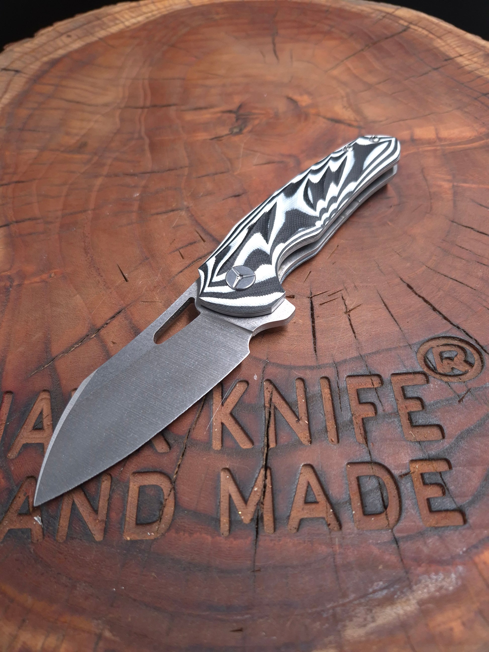 HANDLE: BLACK AND WHITE G10 3D CNC MACHINED